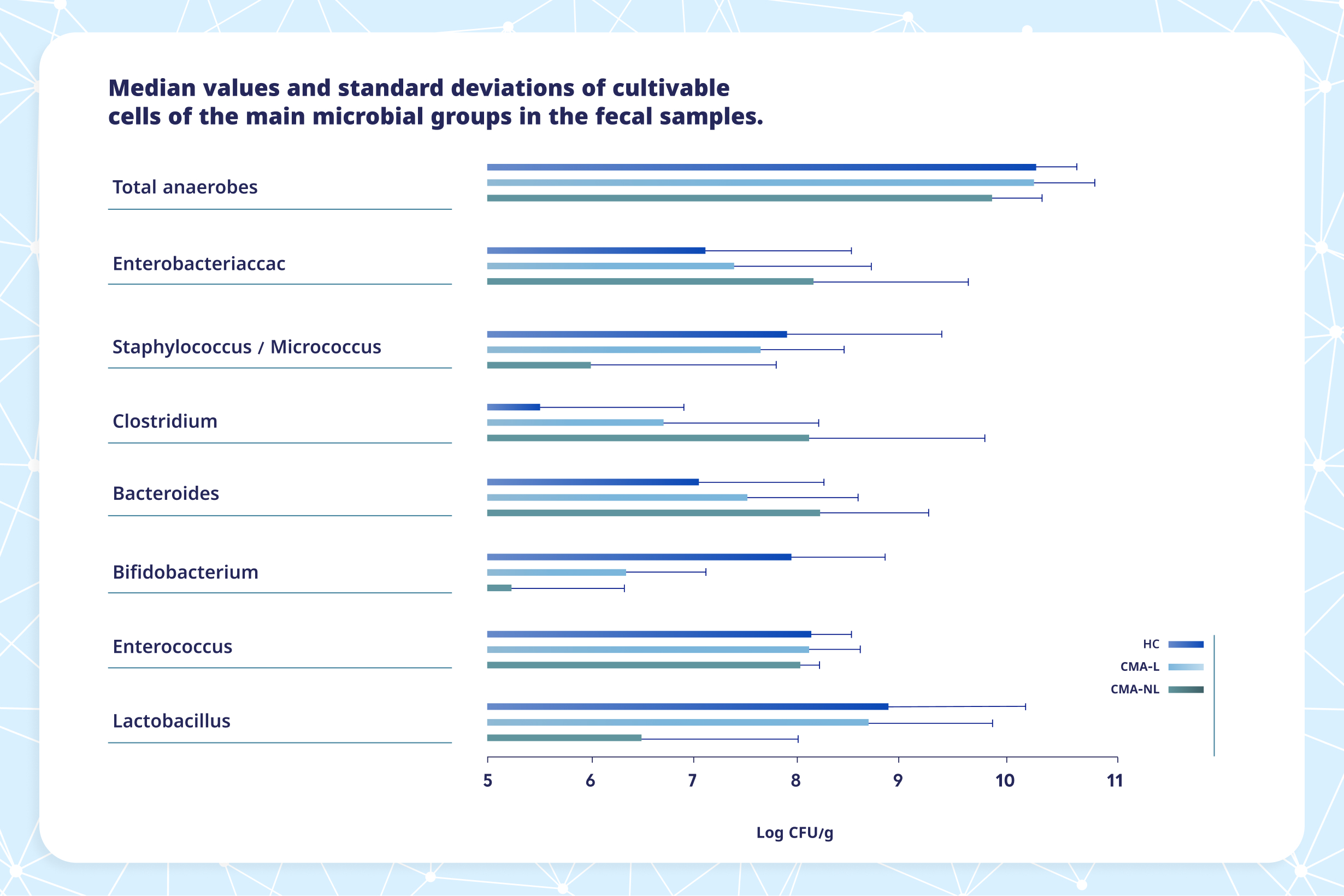 המחקר מצא שדגימות צואה מתינוקות CMPA (שקיבלו תזונה נטולת לקטוז) הכילו מספר נמוך יותר של החיידקים המועילים, כגון Lactobacili ו-Bifidobacteria, בהשוואה לתינוקות בריאים. עם זאת, מספרם של Lactobacili ו-Bifidobacteria, היה גבוה משמעותית בקרב תינוקות שקיבלו תמ״ל + לקטוז, לעומת תמ״ל נטול לקטוז. כמו כן, הריכוז הממוצע של SCFA היה גבוה משמעותית בקרב תינוקות בריאים ובקרב אלה שקיבלו תמ״ל + לקטוז, בהשוואה לתינוקות שקיבלו תזונה נטולת לקטוז. שינוי זה היה קשור למספר כולל גבוה יותר של חומצות שומן מסיסות (SCFAs) ופחות קטונים ואלכוהול.