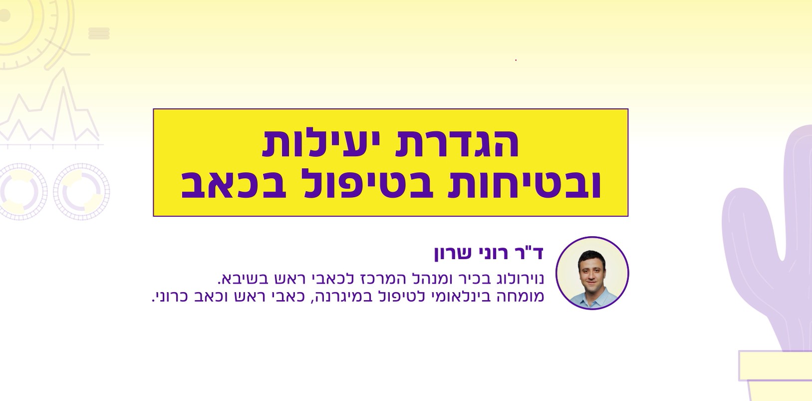 בהרצאה מציג ד"ר שרון, נוירולוג בכיר ומנהל המרכז לכאבי ראש בשיבא